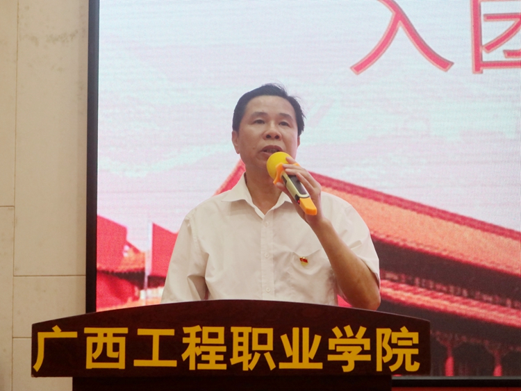 学校党委书记吕伟斌代表学校党委向加入中国共产主义青年团的同学表示热烈的祝贺。吕伟斌书记指出,中国共产主义青年团是中国共产党领导的先进青年的群团组织,有着“党有号召,团有行动”的优良传统。新时代的中国青年要听党话,跟党走,身怀忧国忧民之心,爱国爱民之情。