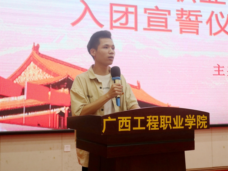 新团员代表傅政豪同学发言,对成为一名新团员感到非常激动和自豪,并表达了今后要遵守团章,履行团员义务,在学习、工作和生活中以身作则,做好表率,努力学习,扎实掌握为人民服务的本领。
