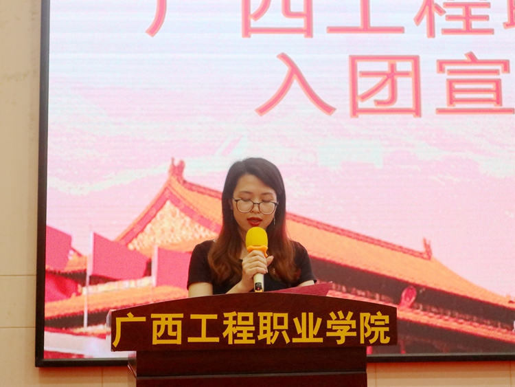 校长助理黄秋霞对新入团的同学表示祝贺,并宣读了新团员名单。黄秋霞助理指出共青团是党的助手和后备军,是党的青年工作中重要力量。广大团员要时刻以共青团员的标准来严格要求自己,努力学习,修德养性,夯实技能,坚持实践,不断创新,起模范带头作用,为社会主义建设事业添砖加瓦。