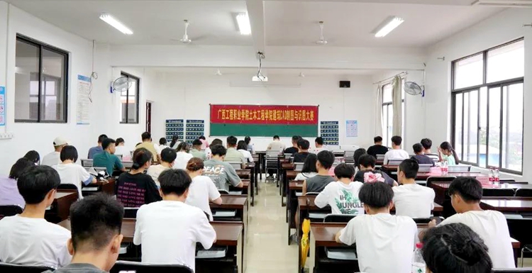 土木工程学院副院长李丽诗讲话。她指出,本次CAD技能大赛是一个非常有意义的比赛,是“知识与能力并重,彰显专业特色”的比赛,它既是对同学们专业技能的一个检验,也是对教师教学质量的成果检验。希望通过比赛进一步推进教学改革和专业建设,以赛促进教师教学、学生学习,不断推进人才培养质量,为地方经济社会的发展提供人才支撑。预祝同学们今天赛出水平。