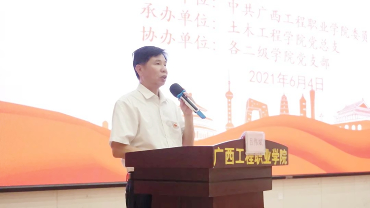 学校党委书记吕伟斌致辞。吕伟斌书记在讲话中指出,党的历史是最生动、最有说服力的教科书。扎实推进开展党史学习教育活动,深入学习贯彻习近平新时代中国特色社会主义思想以及习近平总书记关于“四史”的重要论述精神,不断丰富党史学习教育活动形式,营造浓厚的学习氛围,抓牢抓实党史学习教育活动是学校当前和今后一个时期的首要政治任务。举办“四史”知识竞赛,目的就是要教育引导广大党员、师生知史爱党、知史爱国,在新时代发扬党的光荣传统、优良作风,切实把红色基因融进血脉、铸进灵魂,以永不懈怠的精神状态、一往无前的奋斗姿态投入到学习和工作中,投身到学校改革建设发展的大潮流中,不断增强“四个意识”、坚定“四个自信”、做到“两个维护”。