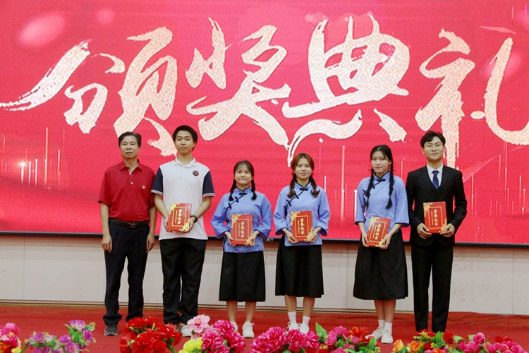 国家税务总局平果市税务局党委书记、局长黄绍谦,学校党委书记、教育督导专员吕伟斌,学校纪委书记李益,学校党委副书记、副校长胡细木,副校长林艳等给获奖选手颁发荣誉证书,并与全体参赛师生合影留念。