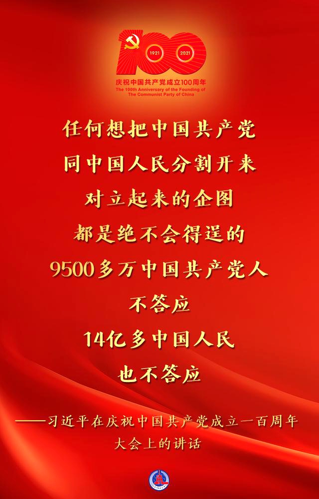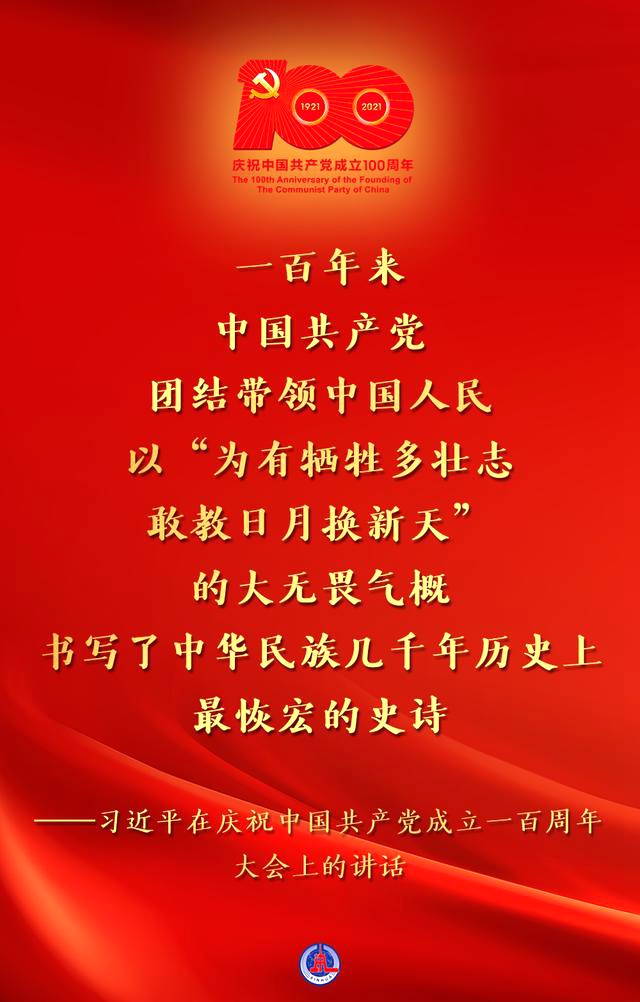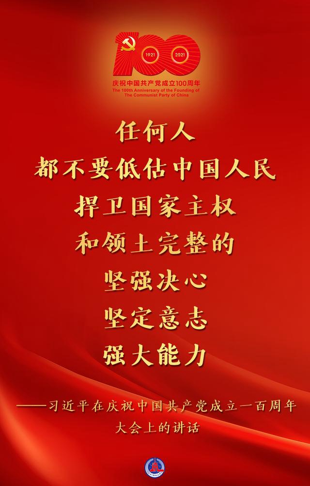 7月1日,庆祝中国共产党成立一百周年大会在北京隆重举行,习近平总书记出席并发表重要讲话。 一起读金句: