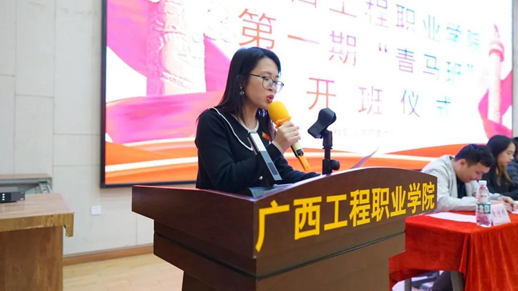 校长助理黄秋霞致辞。她指出,为提高团学骨干和广大团员青年的思想政治素质,在广大青年中着力培养一批具有较高思想政治素养的青年马克思主义者,促进学生优秀骨干分子更好、更快地成长,学校举办了第一期青年马克思主义者培训班。黄秋霞助理对培训班成员提出三个希望: