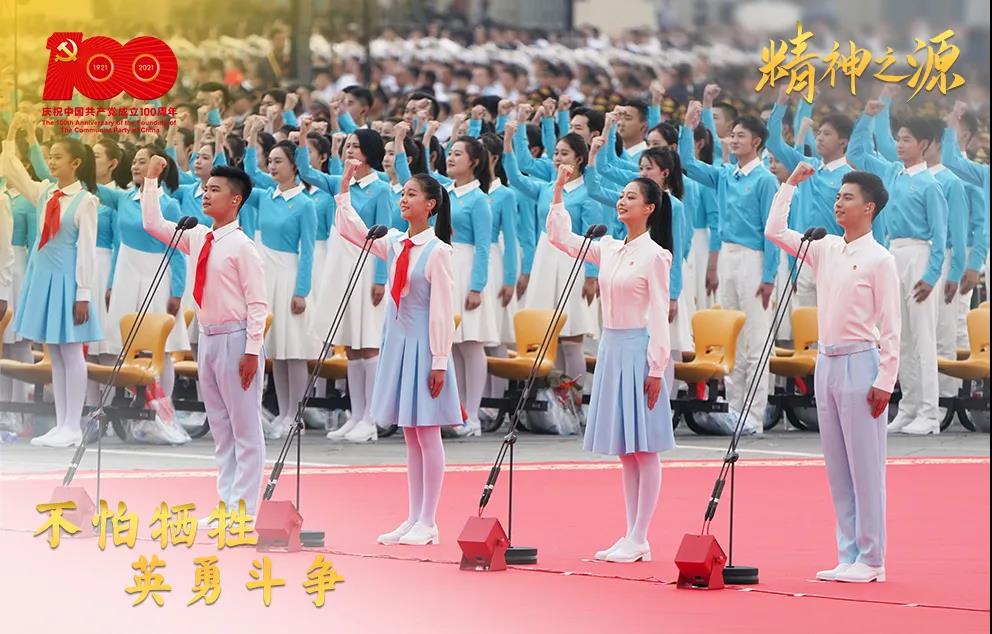2021年7月1日上午,庆祝中国共产党成立100周年大会在北京天安门广场隆重举行。这是共青团员和少先队员代表集体致献词。
