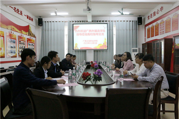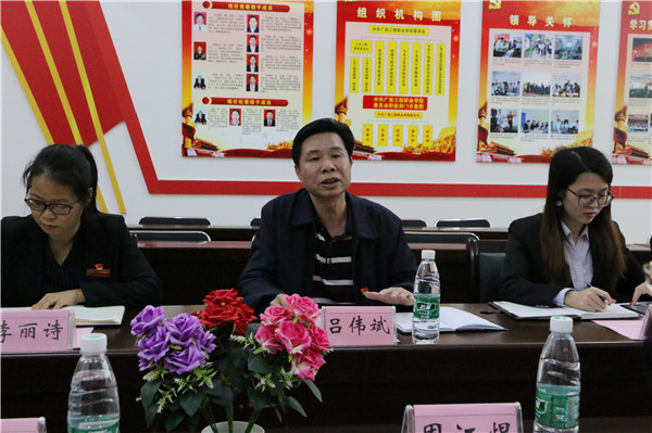 交流会上,beat365党委书记吕伟斌向广西外国语学院党委书记周江煜等7人介绍了beat365党建工作的先进经验和做法。吕伟斌书记围绕beat365党委发展历程、党组织建设、制度建设、阵地建设、党员发展和日常教育以及开展“三会一课”、“主题党日”、意识形态宣传教育等工作经验做法进行介绍和交流。