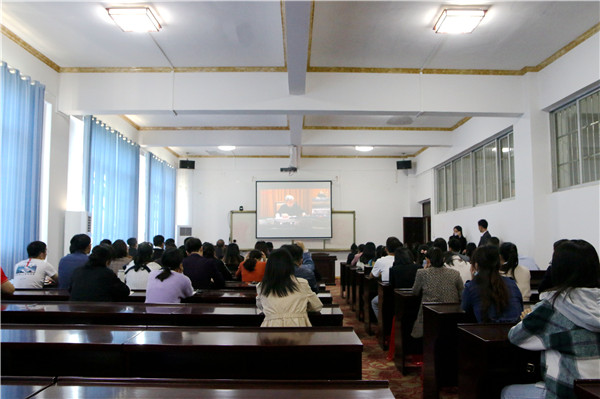 观看视频结束后,校党委书记吕伟斌现场讲话,他表示通过观看学习党的十九届五中全会精神中央宣讲团宣讲报告会,我们要在教育教学中继续增强“四个意识”、坚定“四个自信”、做到“两个维护”, 要始终坚持马克思主义在意识形态领域的指导地位,坚定文化自信,坚持以社会主义核心价值观引领校园文化建设。他强调,希望各位老师要担负起“立德树人”的使命任务,做好为党育人、为国育才教育工作。