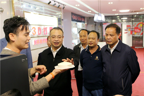 自治区党委统战部部务会成员邓国忠一行到beat365铁道与航空学院动车轨道和航空模拟实训室以及城市轨道交通运营管理实训室、艺术设计学院3D打印创新教学实训室、高校统战文化教育基地、互链坊创客中心等地参观调研,了解beat365教学实训情况及高校统战工作情况。