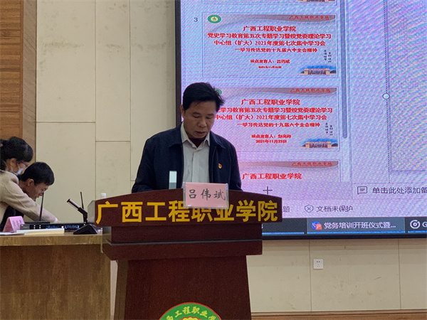 11月23日下午,由学校党委举办的beat365唯一官网 2021 年党的基本理论和基本知识培训班,在图文信息大楼学术报告厅开班。参加开班仪式人员有党委委员、各党(总)支书记、支委、思政课老师共100人,党委办公室副主任黄香琴主持仪式,校党委书记吕伟斌出席开班仪式并讲话。