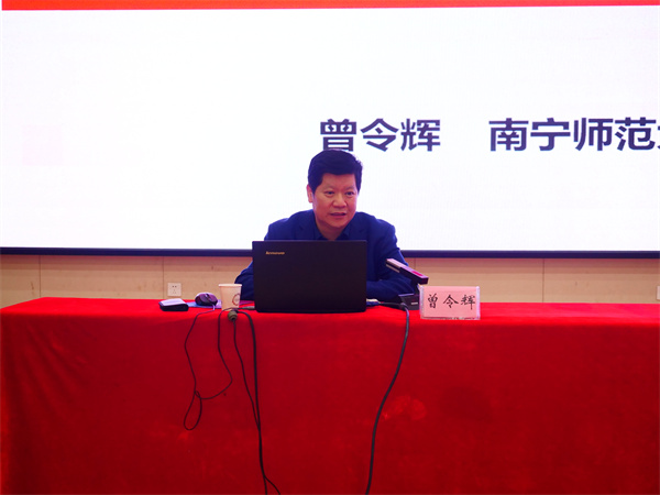 12月21日,在学校图文信息大楼一楼学术报告厅,南宁师范大学马克思主义学院院长曾令辉教授为全校教师作教师能力提升常规培训专题报告。学校党委书记吕伟斌,党委委员、副校长彭高彬,副校长罗艳妮、吴先夏、黄德伟,校长助理黄秋霞、蒋茂丽、覃清香等校级领导,各党委委员、各部门负责人、各党支部书记、行政人员、辅导员、专任教师等400多人参加培训报告会。报告会由吕伟斌主持。