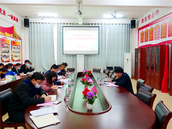 吕书记强调指出,班子成员要带头进一步提高政治站位,全面学习贯彻习近平新时代中国特色社会主义思想,抓好常态化党史学习教育,深刻感悟“两个确立”的决定性意义,深刻感悟党坚持把马克思主义同中国具体实际相结合、同中华优秀传统文化相结合的非凡历程,牢固树立正确的党史观。要坚持用习近平新时代中国特色社会主义思想武装头脑、指导实践、推动工作,带头真学、真信、真懂、真用,带头牢记我们党是什么、要干什么这个根本问题,心怀 “国之大者”,不断增强“四个意识”,坚定“四个自信”,做到“两个维护”。要坚持贯彻新发展理念,履职尽责、担当作为,聚焦新冠肺炎疫情防控、保持经济发展、深化改革开放、维护社会稳定等正在做的工作,不折不扣把党中央决策部署落实到位;带头践行以人民为中心的发展思想,尊重群众意愿,为群众办实事解难题,有效保障改善民生,增强人民群众获得感幸福感安全感,确保党永远保持同人民群众的血肉联系;要坚定扛起管党治党的政治责任,带头深刻汲取党史中正反两方面经验,履行全面从严治党责任,旗帜鲜明讲政治,严守党的政治纪律和政治规矩,落实中央八项规定及其实施细则精神,持续用力纠“四风”、树新风。要深入学习贯彻习近平总书记关于教育的重要论述,特别是对发展职业教育的重要批示精神,以及视察广西“4·27”重要讲话精神和对广西工作的系列重要指示精神,推进党建工作与业务工作深度融合,勇于担当、攻坚克难,统筹抓好新冠肺炎疫情防控和学校各项工作,确保中央精神和自治区党委、百色市委各项决策部署在学校落地生根,勇毅前行,努力开创新时代beat365唯一官网高质量发展新局面,为建设新时代中国特色社会主义壮美广西作出新的更大贡献,以优异成绩迎接党的二十大胜利召开。