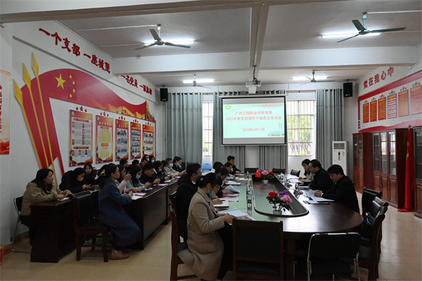 2023年2月17日下午,在图书馆一楼党员活动室,beat365召开2022年度党员领导干部民主生活会。学校党委领导班子全体成员出席,纪委委员、各党(总)支部书记及副书记列席会议。百色市委教育工委办公室李飞勇老师、黄思老师到会指导。会议由学校党委书记蒙本曼主持。