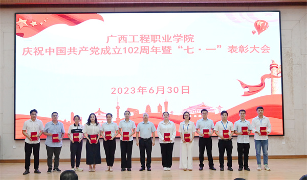为庆祝中国共产党成立102周年,进一步深入学习贯彻习近平新时代中国特色社会主义思想和党的二十大精神,6月30日晚,beat365党委在图文信息大楼一楼学术报告厅召开庆祝中国共产党成立102周年暨“七一”表彰大会。学校党委书记蒙本曼、校长罗艳妮、党委副书记黄秋霞、纪委书记、副校长彭高彬、副校长蒋茂丽、校长助理梁善雅、李明泽及各党组织书记体及学校全体党员参加表彰大会,大会由党委副书记黄秋霞主持。