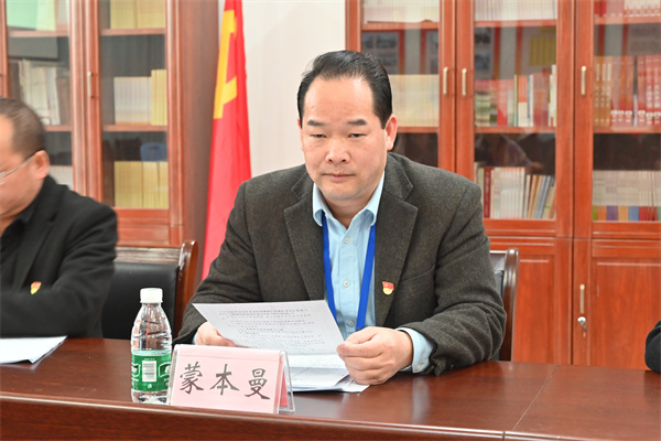会上,蒙本曼书记结合学习内容,作《牢记初心使命,实现高质量发展》主题发言。他指出,要认真学习,学以致用,把专题学习精神落实到思政工作实际中,要狠抓意识形态和师德师风建设,强化责任担当,确保教书育人质量,以高质量的教师思政工作和学生一站式实践打造和创建安稳的校园氛围;要不忘初心、牢记使命,切实发挥高校思想政治工作对全校师生员工的政治引领作用,为建设壮美广西、实现中华民族伟大复兴的中国梦贡献“思政人”的力量;要以习近平文化思想为指引,坚定文化自信,积极弘扬中华民族优秀传统文化,在铸造“非遗广西”文化名片方面贡献高校青春力量。他要求领导干部、教师们要号召青年学生坚定理想信念,在学习贯彻习近平新时代中国特色社会主义思想中把牢青春航向,在国家发展实践中展现青春作为,在应对重大奉献中展现青春风貌,努力在青春的赛道上跑出最好成绩,努力成为时代的创新者、奉献者和引领者。