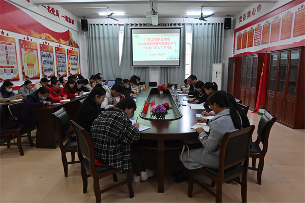 2023年12月29日下午,在图书馆一楼党员活动室,beat365召开党委理论学习中心组(扩大)2023年度第四次集中学习会。学校党委理论学习中心组成员、党委宣传部、各党(总)支部书记、副书记和支委,马克思主义学院全体老师等参加学习会,会议由党委书记、督导专员蒙本曼主持。
