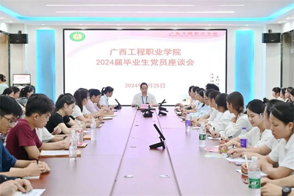 6月25日上午,学校党委在图书馆大数据中心召开2024届毕业生党员座谈会,党委书记、督导专员蒙本曼,党委办公室全体成员,各支部书记、副书记及毕业生党员代表共80余人参会,会议由党委办公室副主任黄香琴主持。