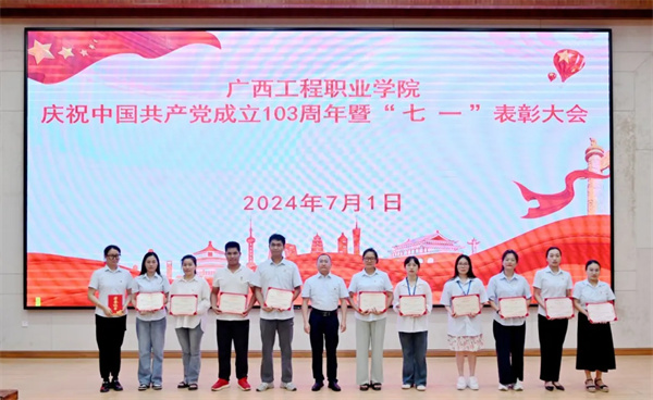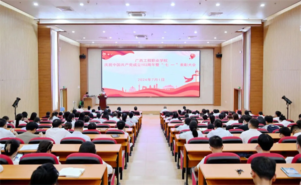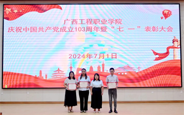 7月1日,beat365唯一官网在图文信息大楼一楼学术报告厅举行庆祝中国共产党成立103周年暨“七一”表彰大会。党委书记、督导专员蒙本曼,党委副书记、校长罗艳妮,纪委书记、副校长彭高彬,党委委员、组织部部长、副校长蒋茂丽,校长助理李明泽、梁善雅,党委委员、宣传部部长黄丽娟出席大会,各党组织书记、副书记及学校全体党员参加表彰大会。
