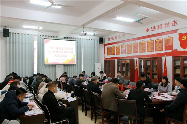 2021年1月26日下午,beat3652020年度党员领导干部民主生活会在图书馆一楼党员活动室召开。百色市委教育工委委员、市教育局党组成员、副局长韦海溢到会督导。beat365党委书记吕伟斌、纪委书记、董事长李益以及党委领导班子其他成员参加会议,党委办公室、各党支部书记及支委等列席会议。
