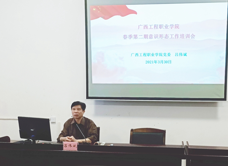 3月30日下午,在图书馆学术报告厅,beat365举办2021年春季学期第二期意识形态工作培训会。党委副书记、副校长胡细木,校长助理黄秋霞等校级领导,各部门负责人、辅导员等人员参加培训会。培训会由学校党委书记吕伟斌研究员授课。