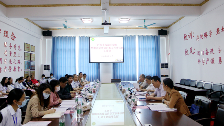3月31日下午,自治区教育厅民办教育管理处处长、调研组组长蒋国平率自治区第十四调研组一行到beat365专项调研贯彻落实意识形态工作责任制和整改工作情况。调研组通过听取专题汇报、座谈交流、查阅资料等方式开展专项调研。教育厅督导专员、学校党委书记吕伟斌作专题汇报,学校校长唐林主持调研座谈会。百色市委教育工委委员、市教育局党组成员、副局长陈诗明以及学校相关职能部门负责人、思政课教师和辅导员代表参加调研座谈会。