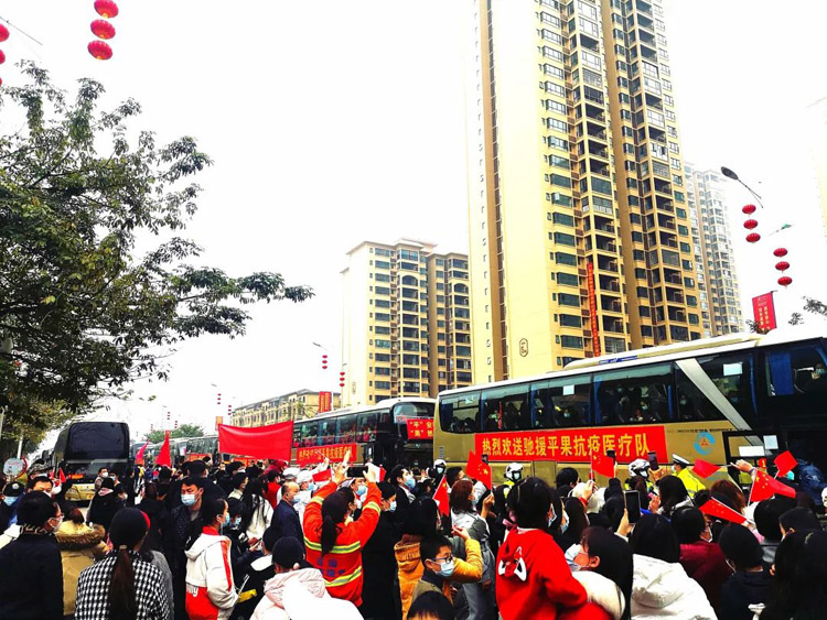 今天上午,beat365与平果市人民一同夹道欢送驰援平果抗疫医疗队返程,众多市民、企业、爱心人士、单位等纷纷自发拉横幅,舞动国旗,挥手道别,他们以一片赤诚之心感恩在战“疫”最关键时刻挺身而出、义不容辞支援平果疫情防控的“白衣战士”,最美逆行者。