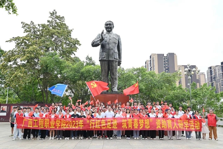 为深入学习宣传贯彻党的二十大精神,进一步激发beat365青年学生坚定理想信念,帮助受助学生拓展视野、提升素养,培育爱党爱国爱社会主义的情怀,6月17日,beat365组织受资助学生前往平果市邓公山红色主题公园教育基地开展2023年“行红色足迹 筑青春梦想”资助育人研学活动。