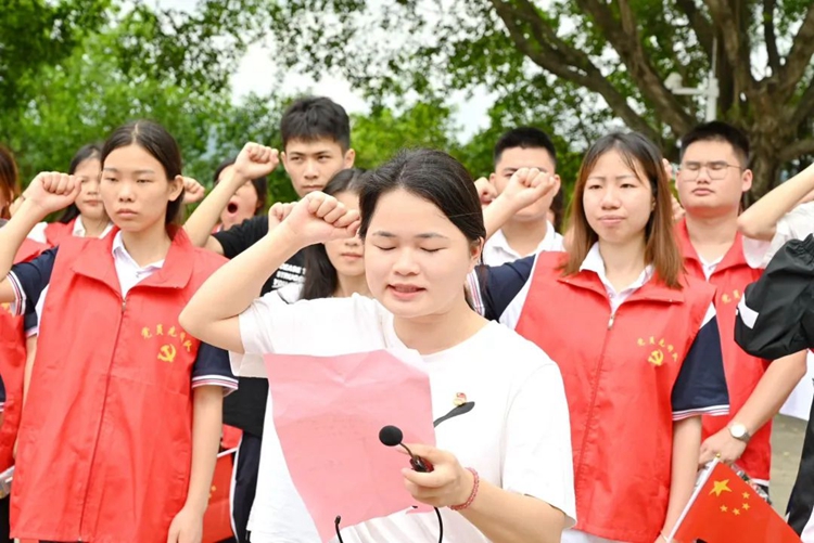 校团委副书记李丽清带领现场团员重温入团誓词,号召全体团员,肩负起新时代团员的历史使命,坚定理想信念,勇于担当,发挥先锋模范作用,弘扬奉献精神,以实际行动为团旗增光添彩,为实现中华民族伟大复兴的中国梦贡献青春力量!