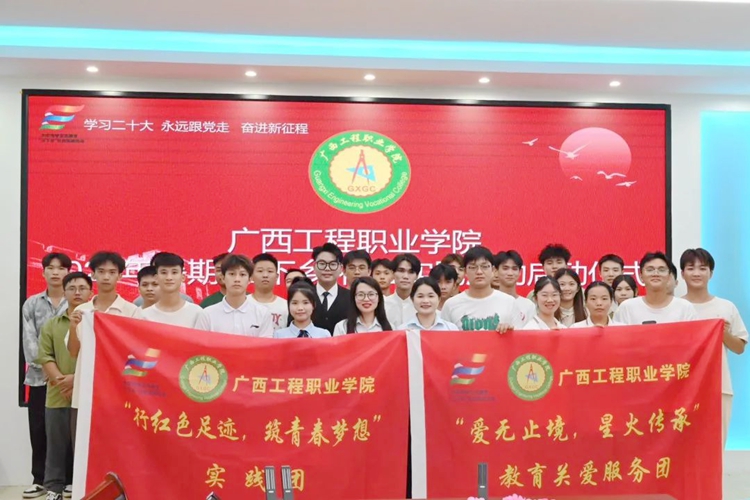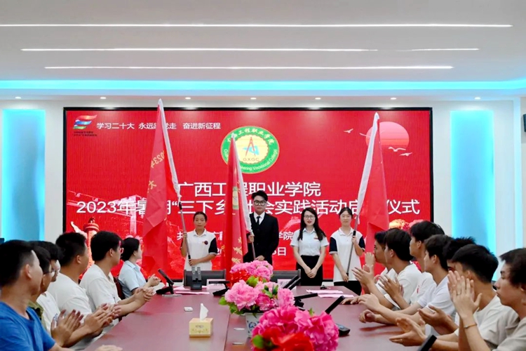 学校党委副书记黄秋霞、学校团委副书记李丽清、学生工作处额小丁老师、教育学院黄能老师、学生工作处覃春林老师以及暑期实践团队、各二级学院学生代表出席本次启动仪式。