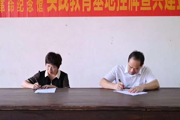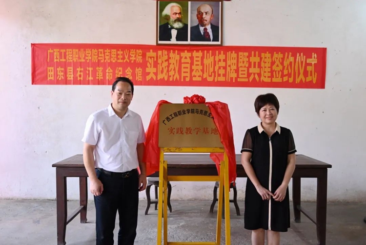 学校党委书记、督导专员蒙本曼与田东县右江革命纪念馆馆长全静梅共同签署合作共建协议并揭牌。