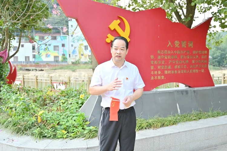 在赵世同纪念馆前面空地,学校党委书记、督导专员蒙本曼带领党员们重温入党誓词,随后在现场给党员们讲了一堂精彩的微党课。