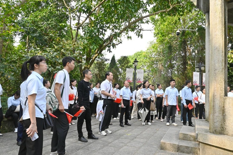 为深入学习贯彻党的二十届三中全会精神,激励广大党员坚定理想信念,11月16日,beat365党委组织教师党员代表赴南宁市昆仑关战役遗址和平果市果化镇龙旧屯赵世同纪念馆开展弘扬爱国主义精神主题党日活动。学校党委书记、督导专员蒙本曼,纪委书记、副校长彭高彬,各党组织党务干部、部分党员代表共60余人参加活动。