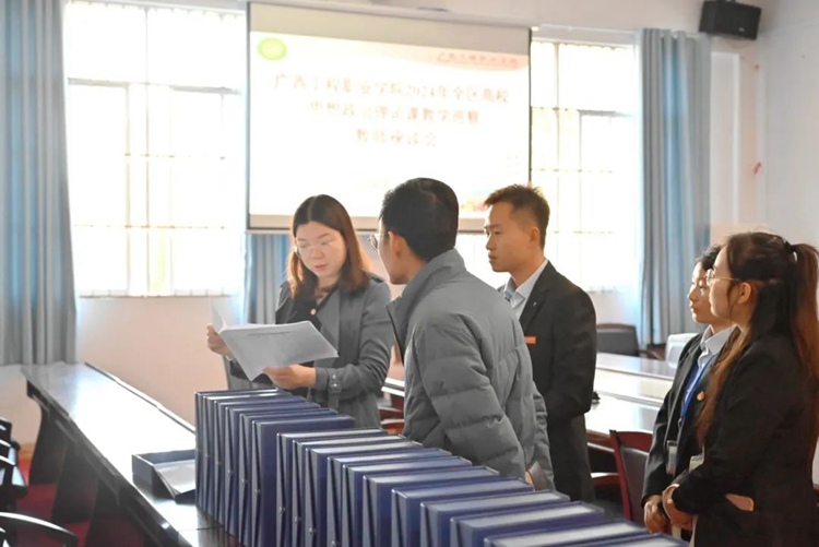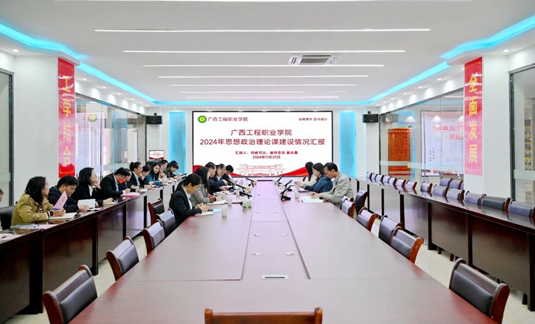 图为党委书记、督导专员蒙本曼汇报学校2024年开展思政理论课建设工作情况