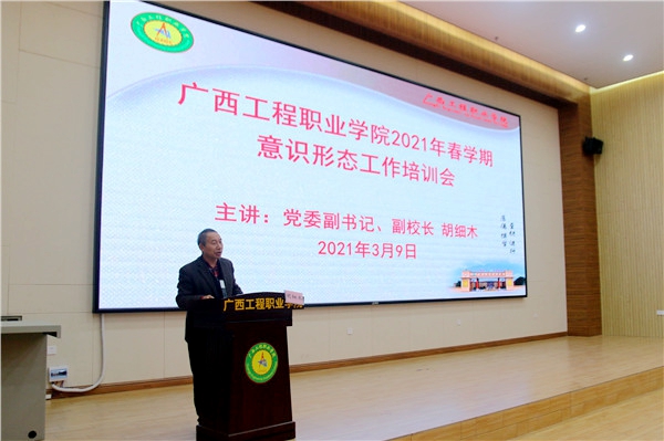 为全面部署2021年意识形态工作,落实意识形态工作责任制,3月9日下午,beat365唯一官网在图文信息大楼学术报告厅举行2021年春学期意识形态工作培训会,校党委书记吕伟斌,校党委副书记、副校长胡细木及校长助理黄德伟、黄秋霞等党政领导,各部门负责人、行政人员、无课的专任教师和辅导员等同志参加培训会,培训会由胡细木同志主持。
