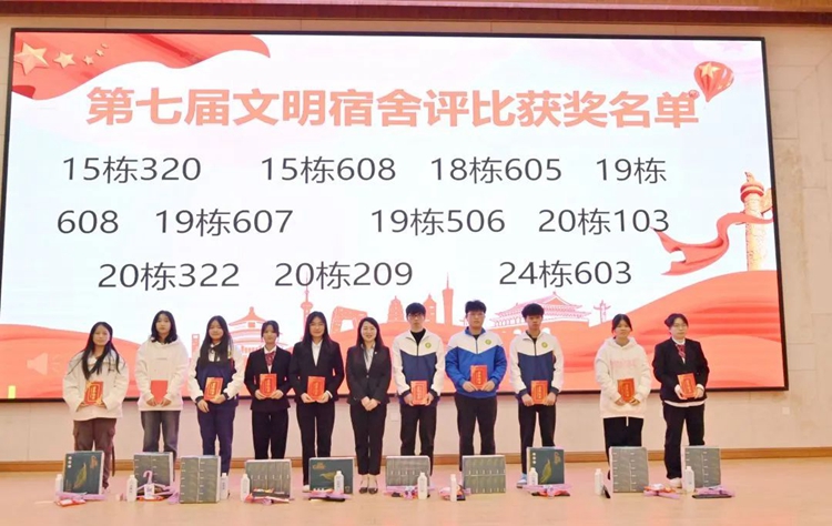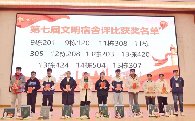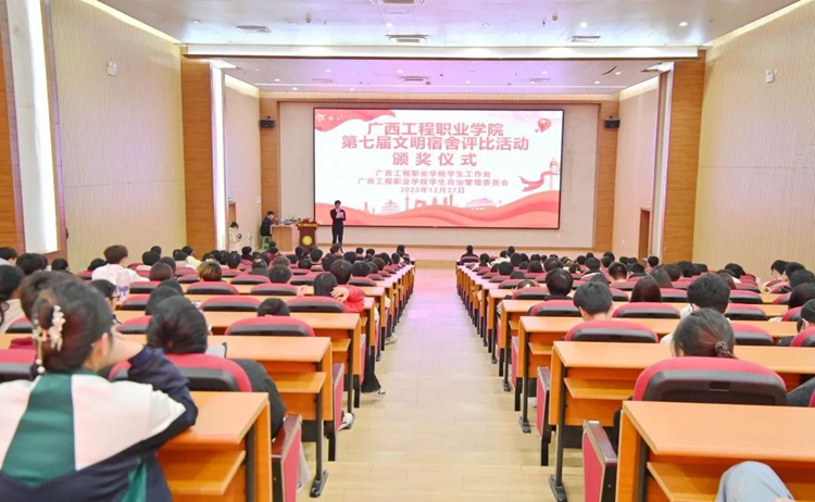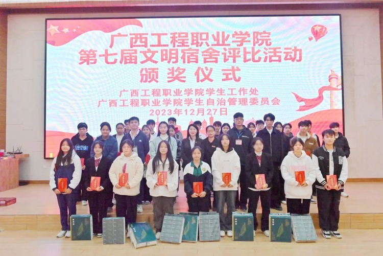 为进一步加强文明校园建设,培养同学们良好的学习生活习惯,同时营造温馨舒适、健康和谐的宿舍文化氛围,为广工院学子提供整洁、安全、文明的学习生活环境,2023年12月27日,学校在图文信息大楼一楼学术报告厅举行第七届文明宿舍评比活动颁奖仪式。