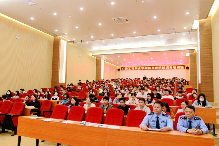 平果市打击传销工作领导小组办公室副主任、市场监督管理局副局长文起泉和平果市打击传销工作领导小组办公室副主任、公安局副局长陆荣康分别围绕“如何区分直销与传销”、“传销的危害及相应的鲜活案例”、“大学生应如何防范传销”、“国家对传销的打击力度”等方面详实而生动地讲述防范传销相关知识,为同学们普及科学的防范知识,要求同学们加强自我防范意识,增强自我保护能力,发现传销情况要主动和老师反映,不能参与传销,更不能鼓动他人传销,自觉远离和抵制传销,共同参与遏制防范传销活动进校园。