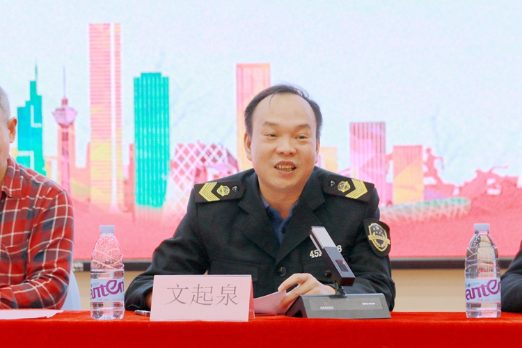 平果市打击传销工作领导小组办公室副主任、市场监督管理局副局长文起泉作防范传销知识讲座