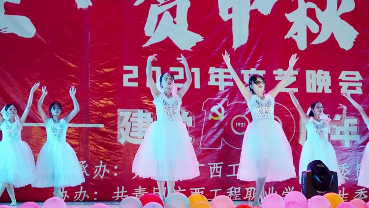 团市委陆妍君书记,平果市大学园区党工委书记、平果大学园区管理服务中心党组书记许安著,平果市大学园区党工委专职副书记黄华婷,中国联合网络通信有限公司平果分公司副总黄海伟;学校党委书记吕伟斌、纪委书记李益、党委副书记胡细木,副校长林艳、林萌、彭高彬、罗艳妮、黄德伟以及校长助理黄秋霞等出席晚会。