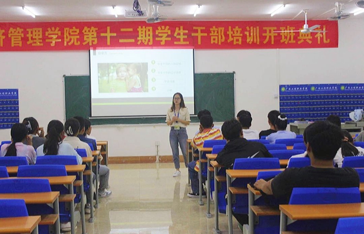 开班典礼结束,经济管理学院副院长覃清香为全体学生干部作了题为《如何做一名优秀的学生干部》的开班第一讲。