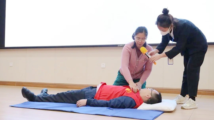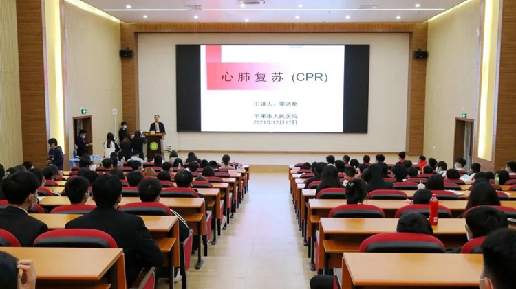 平果市人民医院医院副院长零达格作心肺复苏专题培训。零达格副院长以通俗易懂的语言、生动形象的演示,详细讲授了心肺复苏的理论知识、流程、步骤以及注意事项,希望同学们掌握急救技能,牢记“时间就是生命”,能够在第一时间挽救更多生命。医护人员还现场演练心肺复苏、人工呼吸等技能的操作规程和一般要领。