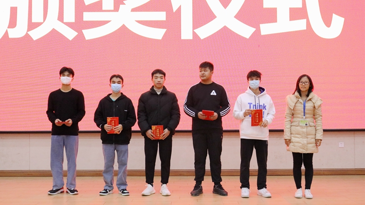 学生工作处副处长卢保日为荣获三等奖的文明宿舍代表颁奖