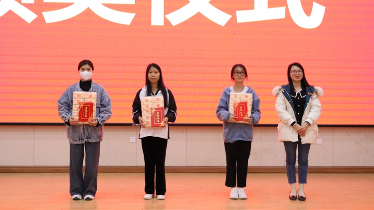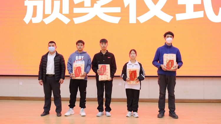 校长助理覃清香为荣获二等奖的文明宿舍代表颁奖