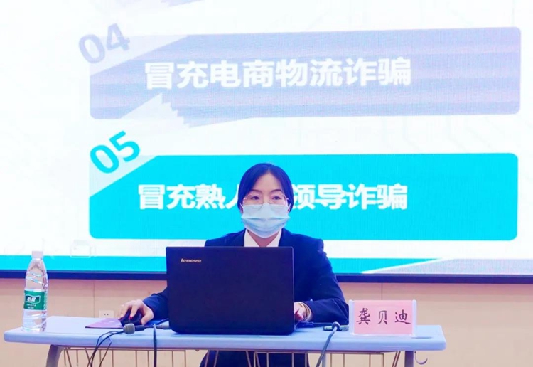 活动中,平果市人民法院刑事审判庭龚贝迪同志运用丰富、生动的案例,直观简明地为师生们讲解了几种常见的诈骗手段,用发生在身边的真实案例告诉同学们增加反诈骗知识的重要性,敲响了防诈骗的警钟,并提醒师生们,预防诈骗要坚持不轻信、不透露、不汇款、不转账,坚决不给不法分子可乘之机。