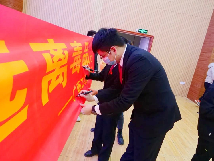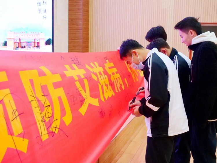 讲座上还开展了“珍爱生命、远离毒品”和“预防艾滋病,你我同参与”的签字活动。参加讲座的领导、嘉宾和师生纷纷在横幅上签字表达禁毒防艾的决心。