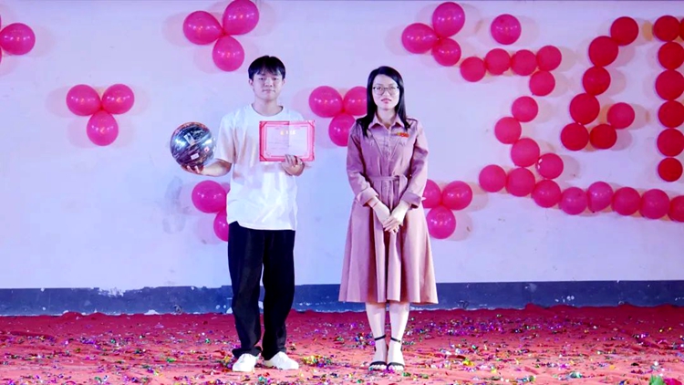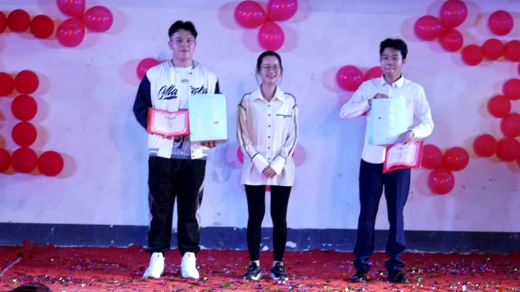 校团委书记梁凤琴为获得三等奖选手颁奖