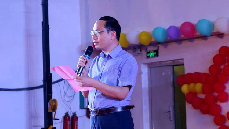 黄德伟副校长致辞,他说到,为庆祝建校十五周年、共青团建团一百周年以及党的二十大的召开,繁荣校园文化,汽车与机电学院举办了“喜迎建校十五华诞,携手建团百年芳华”第七届蒙面歌王大赛。希望同学们在比赛中充分展示才华,唱响青春,筑梦起航。