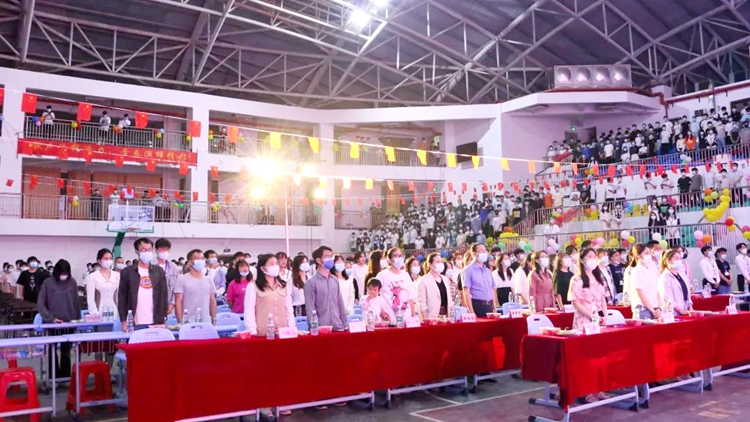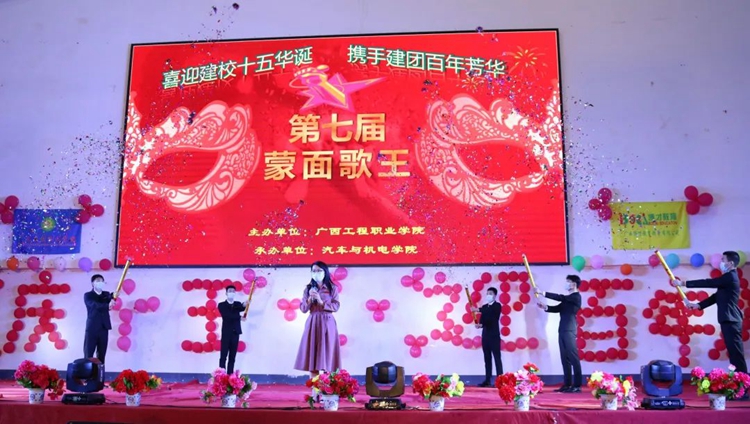 2022年4月15日,汽车与机电学院在体育馆举行“喜迎建校十五华诞,携手建团百年芳华”第七届蒙面歌王大赛。