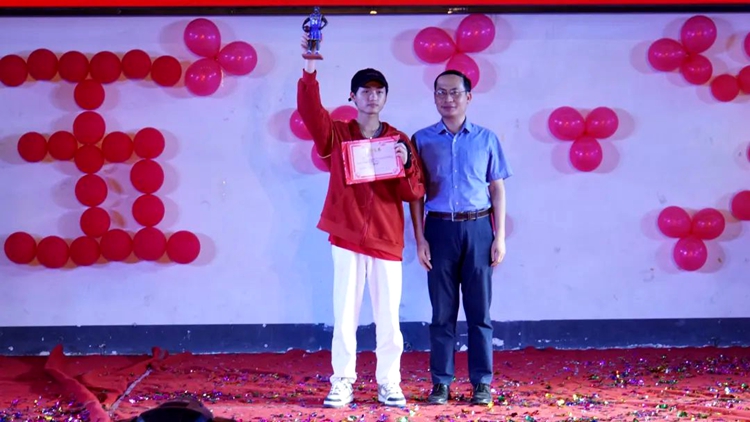 学校副校长黄德伟为获得第二名的选手颁奖