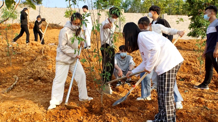 五年大专部“植树添绿迎校庆,携手一起向未来”植树活动
