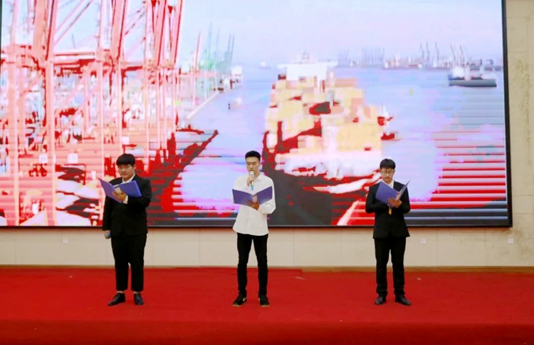 参赛队员们在背景音乐的渲染下,声情并茂地朗诵。那铿锵有力的声音,慷慨激昂的真挚情感,在报告厅回荡,动人心弦。一个个极具表现力和感染力的高质量节目引起了现场观众的共鸣,赢得阵阵掌声。