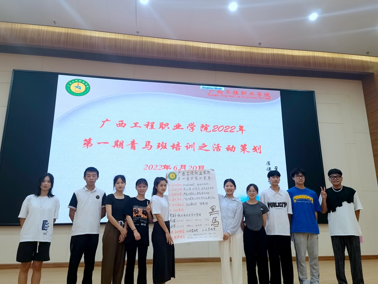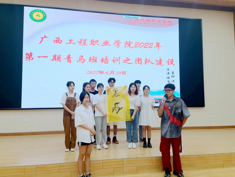 团队建设活动开始后,青马班学员们随机分成六个小组,互不认识的小组成员迅速行动起来,推选小组长,并团结协作,集思广益,短时间内就想好了小组的队名、队歌等。在小组展示的过程中,各个小组发挥自身优势,展示了别具特色的团队文化。